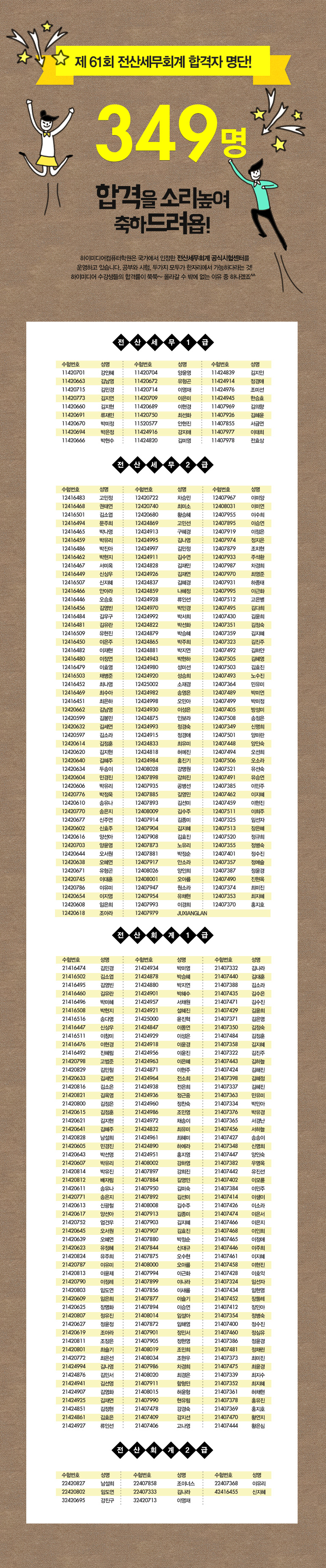 제61회 전산세무회계 자격증시험 함격자 명단