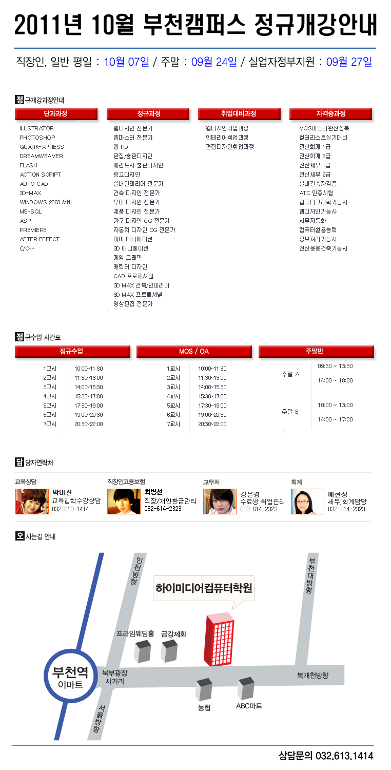 [정규개강] 2011년 10월 부천캠퍼스 개강안내
