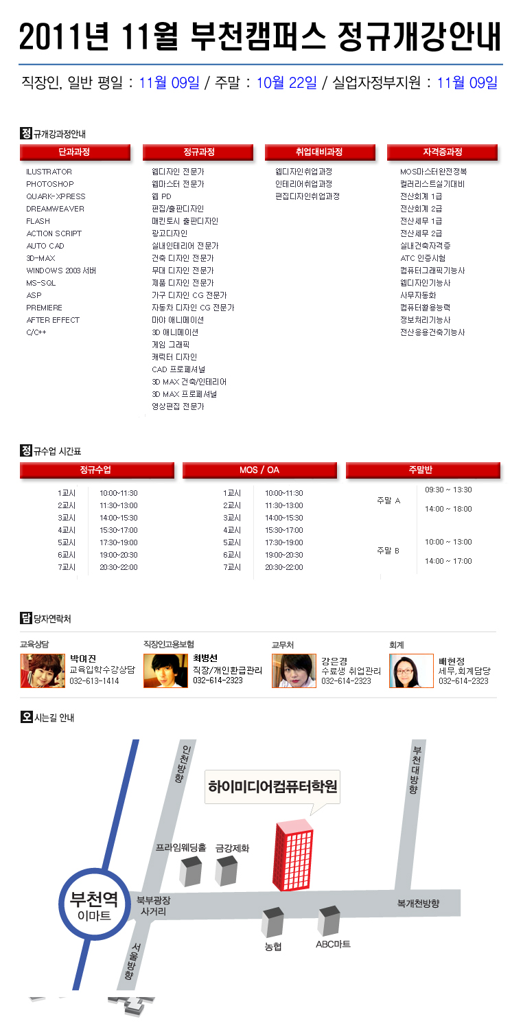 [정규개강] 2011년 11월 부천캠퍼스 개강안내