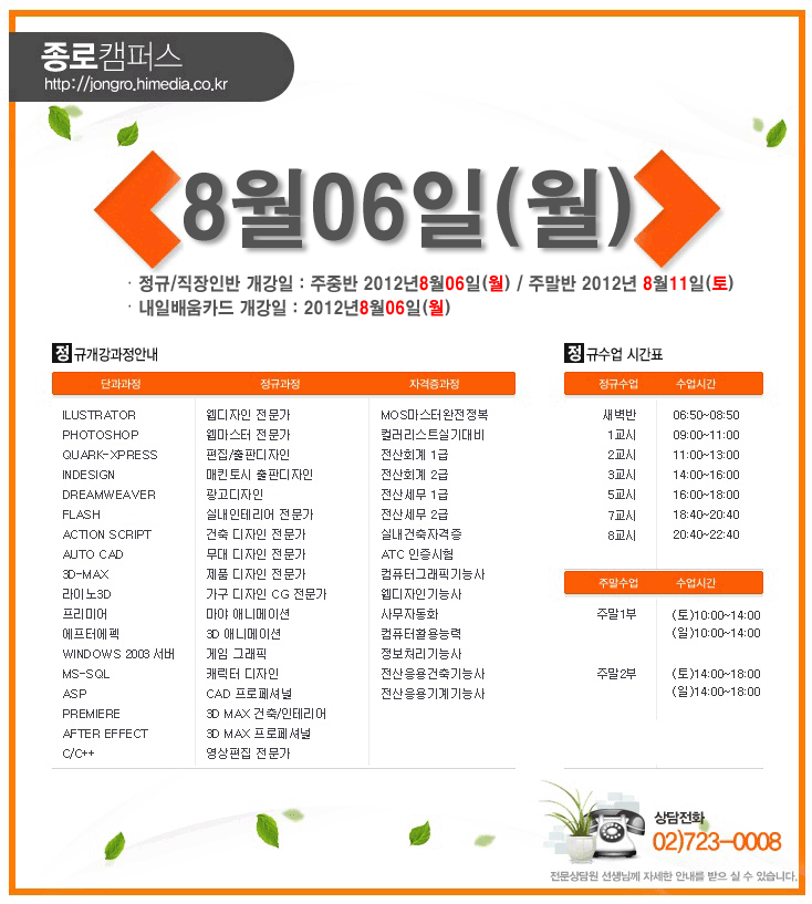 [정규개강] 2012년 8월 정규개강안내